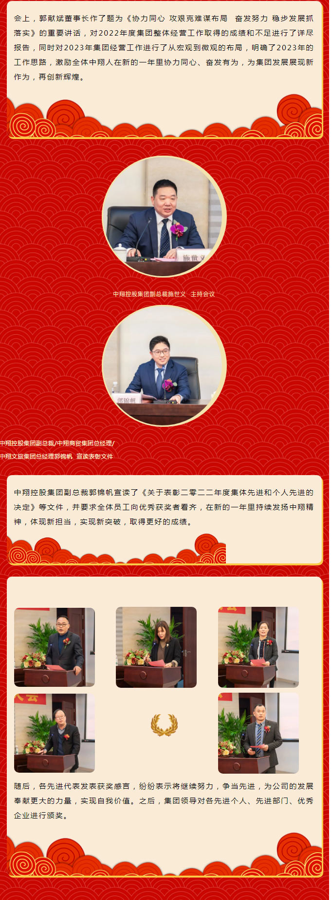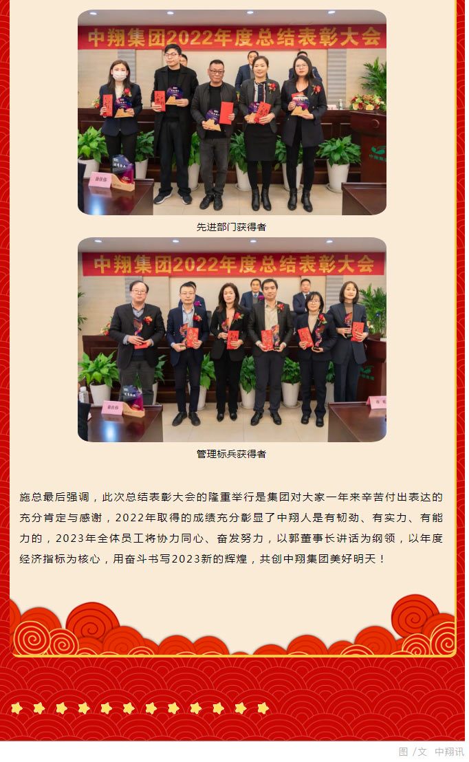 协力同心 攻艰克难谋布局 奋发努力 稳步发展抓落实——中翔控股集团举行2022年度总结表彰大会