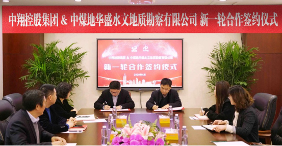 2020年4月1日10:30,中翔控股集团&中煤地华盛水文地质勘察有限公司新一轮合作签约仪式在中翔大厦31楼隆重举行。