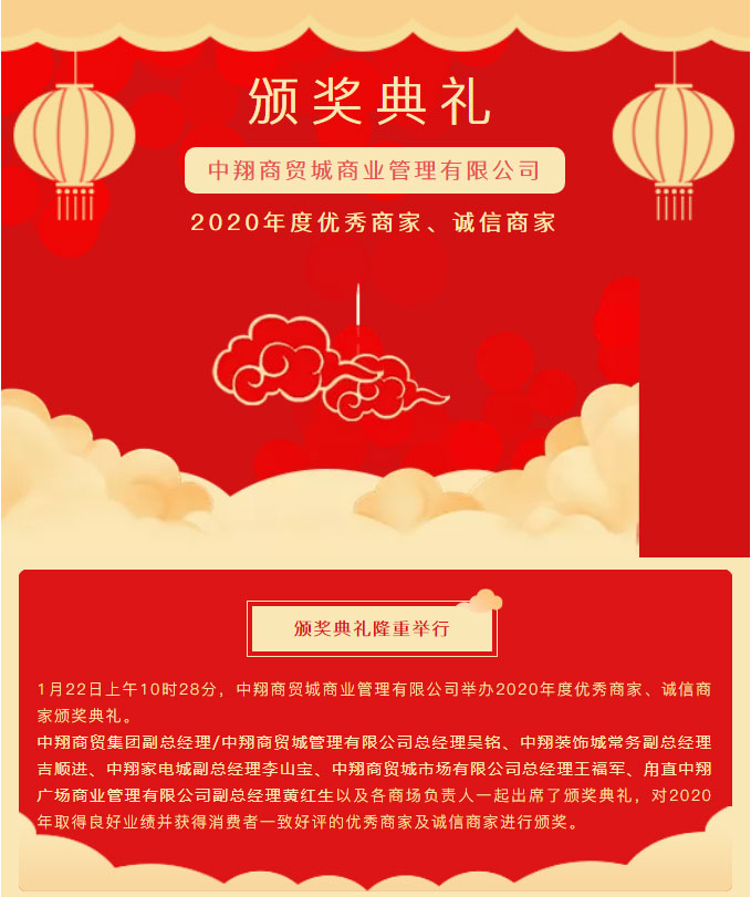 中翔商贸城商业管理有限公司 2020年度优秀商家、诚信商家颁奖典礼隆重举行!
